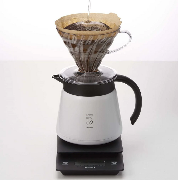 Featuring a smart pour-through lid with a stop tap to control your flow rate, the Hario Heat Resistant Server is a vacuum-sealed thermal server and is compatible with all Hario drippers and serves up to 4 people.